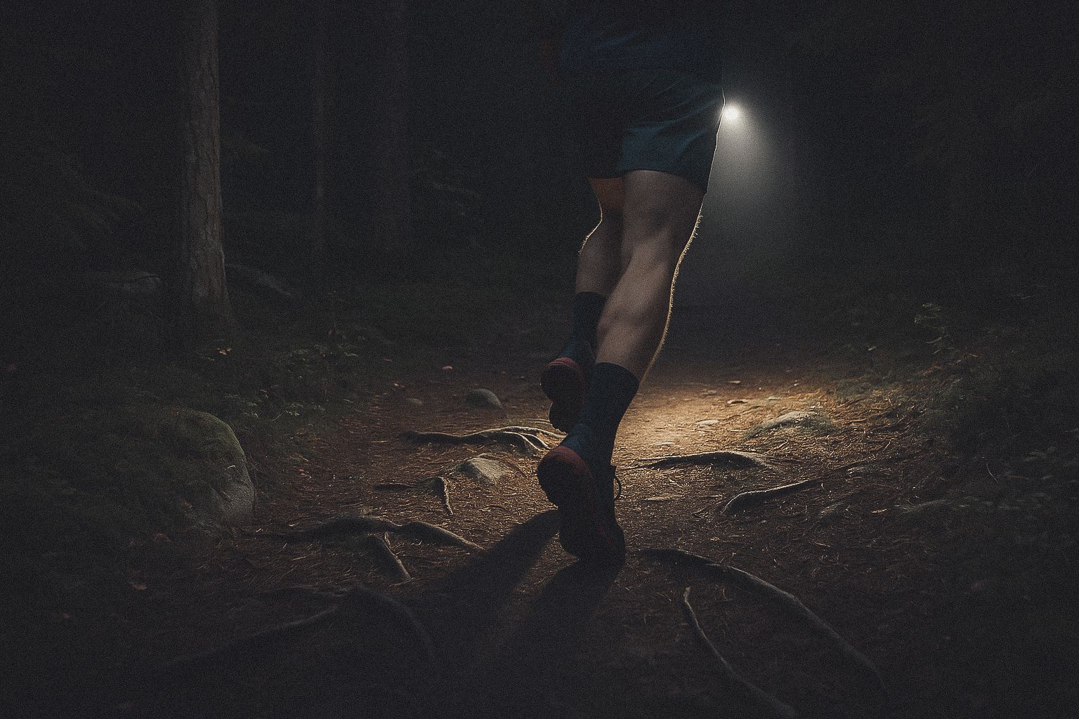 I mörkret förstärks alla intryck - pannlampans sken som fångar stigarna framför dig, skogens ljud som känns lite närmare, pulsen som slår lite hårdare. Det är bara du, mörkret och vägen framåt. Välj mellan 5  eller 10km.
